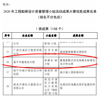 近日,中國勘察設計協會公布了2020年工程勘察設計質量管理小組活動成果大賽結果,我院給排水QC小組申報的《提高裝配式住宅給排水標準化設計的比例》課題榮獲2020年全國工程勘察設計質量管理小組活動成果大賽I類成果獎。